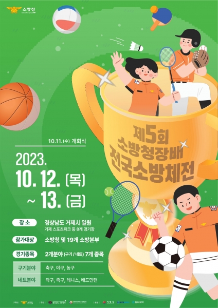 2019년부터 시작해 올해로 5회를 맞이한 소방청장배‘전국소방체전’은 10월 12일부터 13일까지 이틀간 7개 종목에 소방청 및 19개 소방본부에서 소방공무원 2,500여명이 참가해 심신건강 증진과 소통·화합의 장으로 마련된다.