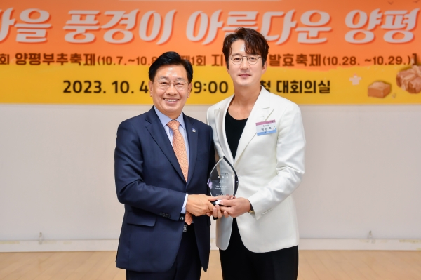 전진선 군수는 “양평군의 새로운 홍보대사가 되신 정준호 씨를 진심으로 환영하고 축하한다”며 “많은 분들에게 사랑받는 국민 배우로서 우리 지역을 알리는 중요한 역할을 해주시길 기대한다”고 말했다