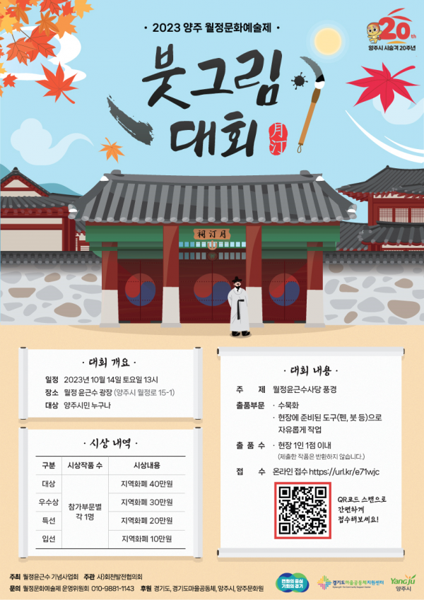한편 월정문화예술제 운영위원회는 월정 윤근수 기념사업회와 회천발전협의회로 구성된 위원회로 양주시의 차별화된 지역 문화예술제를 만들기 위해 이번 행사를 기획했다.
