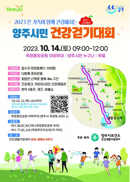 [금요저널] 양주시 보건소는 오는 14일 오전 10시 맑고 청아한 가을 하늘 아래 옥정중앙공원에서 ‘2023년 양주시민 건강걷기대회’를 개최한다고 밝혔다.