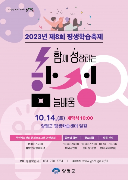 [금요저널] 양평군은 오는 14일 양평군 평생학습센터 및 물맑은 양평체육관 일원에서 ‘제8회 양평군 평생학습축제 함성을 개최한다고 밝혔다.