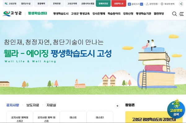 [금요저널] 지난 3월 평생학습도시로 선정된 고성군은 평생교육 반응형 누리집을 구축하기 위해 10월 13일까지 ‘강사은행 인력풀 및 평생학습 동아리 등록’을 진행한다.