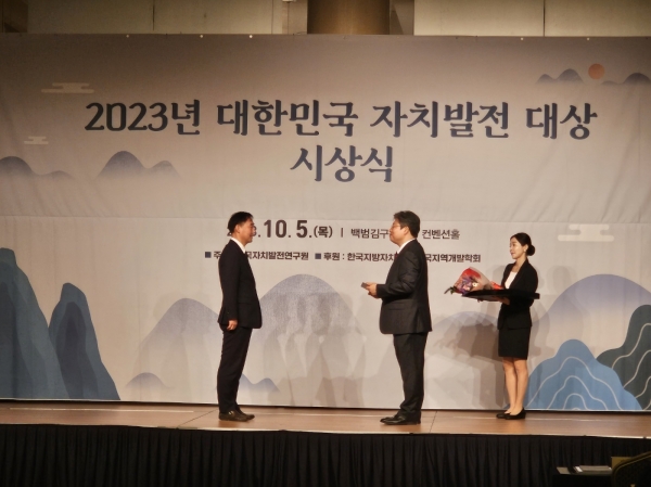 한편 올해 7회째 열리는 대한민국 자치발전 대상은 지방자치의 발전과 지역발전에 이바지한 정책 및 지역혁신을 불러 일으킨 정책, 지방자치시대에 맞는 자치분권의 모범이 되는 정책을 펼친 이에게 수여하는 상이다.