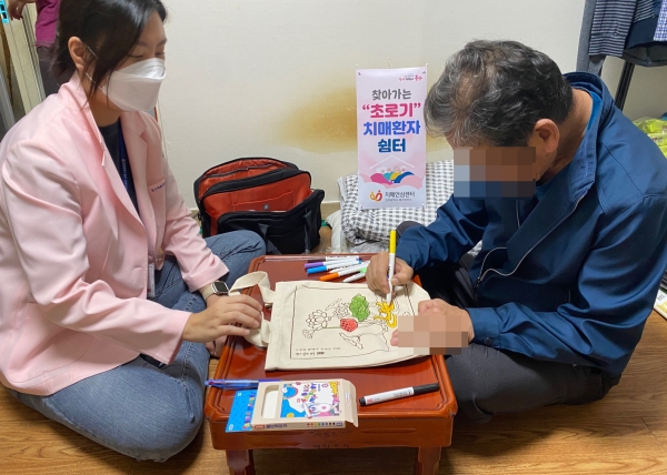 동구보건소 치매안심센터 전문 인력은 치료할 환자가 있는 가정에 주 1회 방문해 창작, 인지, 신체활동 등을 교육한다.