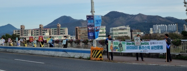 [금요저널] 밀양시가 지난 9월에 이어 6일 남천교에서 ‘바이바이 플라스틱’ 전환을 위한 현장 캠페인을 펼치며 시민의 동참을 촉구했다.