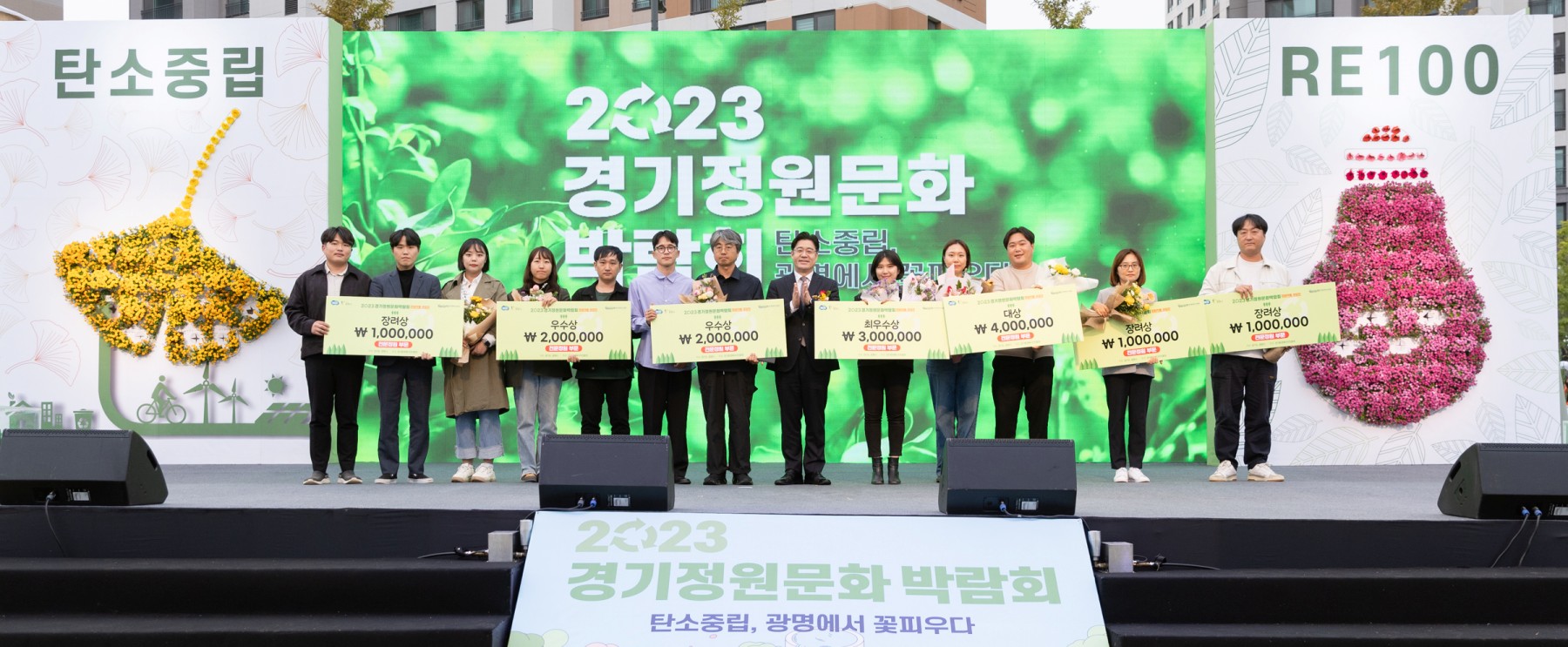 경기도는 지난 6일 오후 광명 새빛공원에서 열린 제11회 경기정원문화박람회 개막식에서 정원작품 공모전 시상식을 열고, 전문정원과 생활정원 각 부문 대상 1개, 최우수상 1개 등 총 14개 우수작품을 선정하고 최대 400만 원 등 총 1,790만 원의 상금을 시상했다.