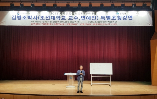 강연에는 중앙대학교 연극영화과를 졸업하고 KBS 및 MBC 등 다수의 방송에 출연한 방송인이자 한학자이며 개그맨에서 스타강사로 변신한 김병조 조선대학교 평생교육원 명예원장이 강연했다.