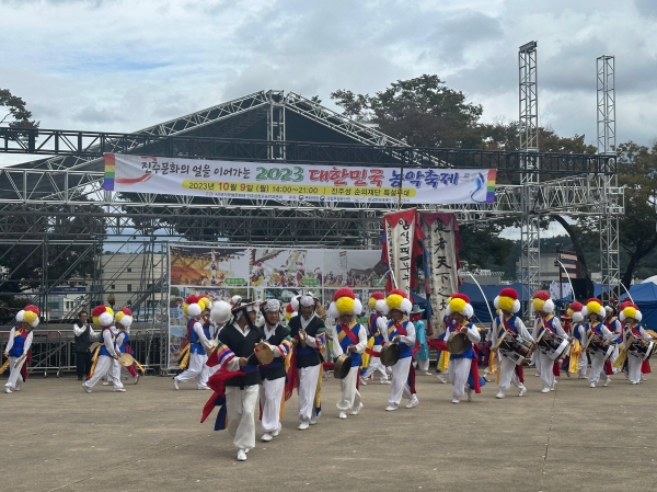 [금요저널] 낮과 밤이 아름다운 축제의 도시 진주에서 대한민국을 대표하는 농악인들의 흥겨운 한마당 행사인 2023 대한민국 농악축제가 펼쳐졌다.