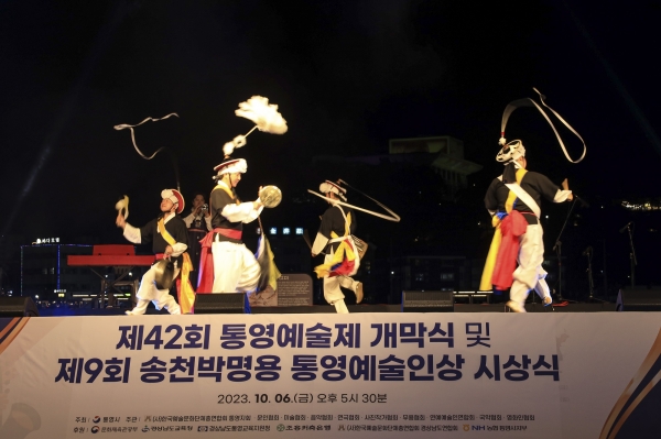 [금요저널] 통영시가 주최하고 한국예술문화총연합회통영지회가 주관하는 통영 예술인과 시민들이 함께하는 예술축제 한마당인‘제42회 통영예술제’개막식이 지난 6일 강구안 문화마당에서 개최됐다.
