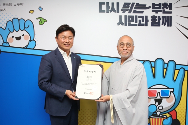 [금요저널] 부천시는 국가지정문화재 보물로 지정된 불조삼경에 대한 지정서를 지난 6일 소유자인 대한불교조계종 석왕사에 전달했다.