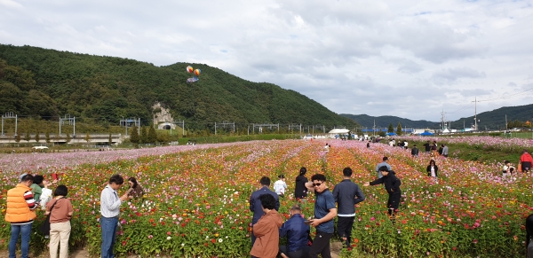 [금요저널] 한가위 황금연휴를 맞춰 ‘꽃길따라 향기따라 꽃천지 북천으로’를 슬로건으로 한 제17회 하동 북천 코스모스·메밀꽃 축제가 13일간의 일정을 마치고 지난 9일 폐막했다.
