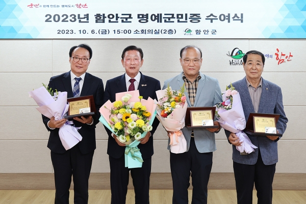 한편 군정 발전에 기여한 공로가 큰 내·외국인에게 심사위원회를 거쳐 선정하는 함안군 명예군민은 지난 2009년 처음 명예군민증을 수여한 이래 총 15명이 됐다.