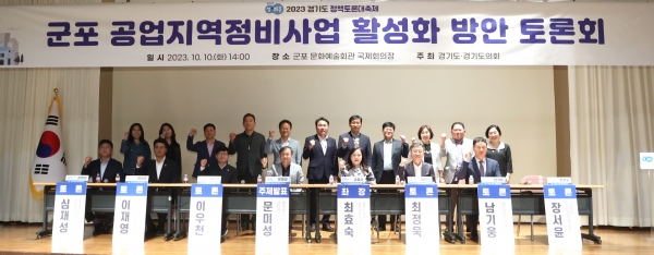 [금요저널] 경기도의회 교육기획위원회 최효숙 의원은 10월 10일 경기도와 경기도의회가 공동 주최하는 ‘2023 경기도-경기도의회 정책토론 대축제’의 일환으로 ‘군포 공업지역정비사업 활성화 방안 토론회’를 군포 문화예술회관 국제회의장에서 개최했다.