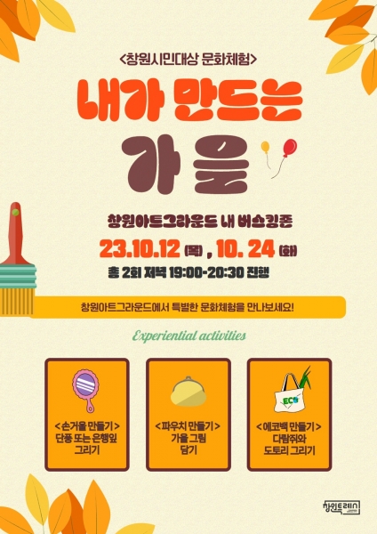 [금요저널] 창원특례시는 오는 12일부터 창원아트그라운드에서 ‘내가 만드는 가을’을 주제로 문화체험행사와 국화콘텐츠 및 청년 사진 작가 전시를 진행한다.