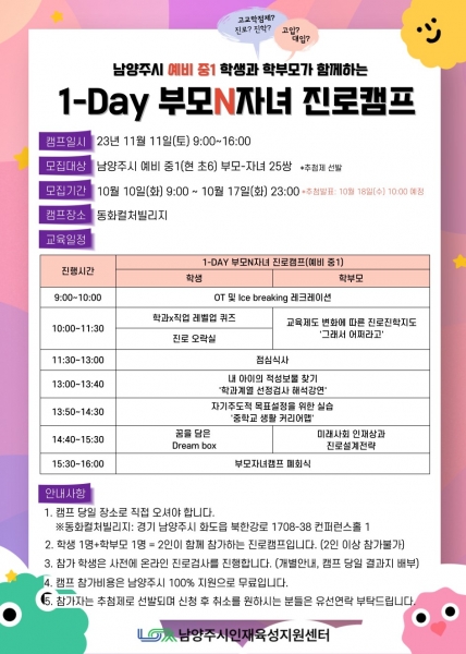 남양주시,‘1-Day 부모N자녀 진로캠프’참여자 모집