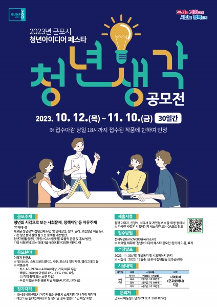 [금요저널] 군포시는 청년의 시각으로 보는 정책제안, 사회문제 등 청년의 자유로운 생각과 고민을 이미지 콘텐츠로 담아내는 ″청년생각〞공모전을 개최한다.