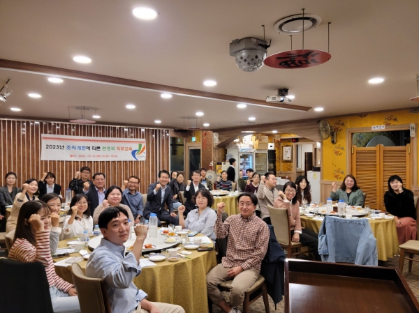 1부 교육에서는 환경국장의 주재하에 2023년 조직개편에 따른 환경국 산하 6개의 과별 긴밀한 업무협의와 소통의 가교역할의 중요성에 대해 함께 이야기를 나눠보는 뜻깊은 자리가 됐다.