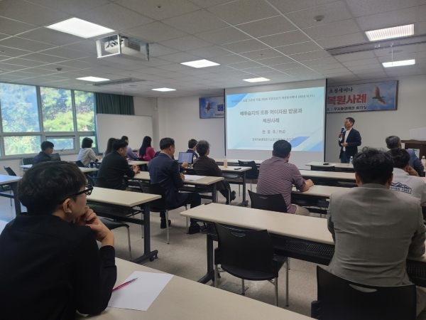 이번 세미나는 가톨릭대학교 의생명과학과 교수이며 한국 PGA생태연구소 소장 한동욱박사를 초청해 ‘배후습지의 조류 먹이자원 발굴과 복원사례’라는 주제로 진행됐다.