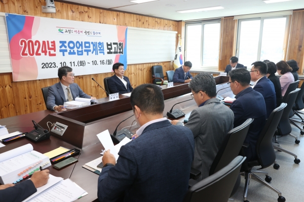 [금요저널] 고성군은 10월 10일부터 16일까지 3회에 걸쳐 이상근 군수 주재하에 2024년 주요업무계획 보고회를 개최하고 있다.