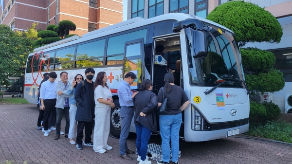 재학생과 교직원 약 40명이 캠퍼스 내 원형광장 앞에 주차한 ‘사랑의 헌혈버스’에 올라 생명 나눔과 봉사의 가치를 되새기는 뜻깊은 시간을 가졌다.