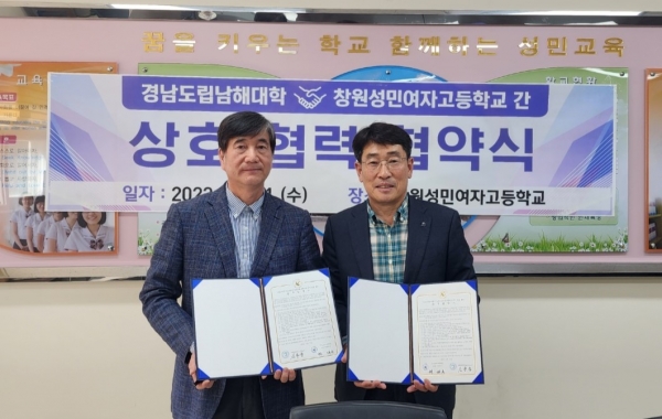 이번 협약으로 남해대학과 성민여고는 원활한 입시업무 추진 및 고교-대학 간 유대관계 강화, 상호 교육발전을 위해 적극 협력하기로 약속했다.