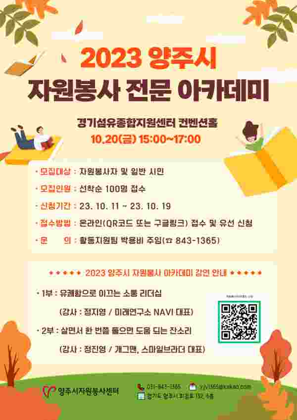[금요저널] 양주시자원봉사센터는 오는 20일 경기섬유종합지원센터 컨벤션홀에서 ‘2023 양주시 자원봉사 전문 아카데미’를 개최한다.