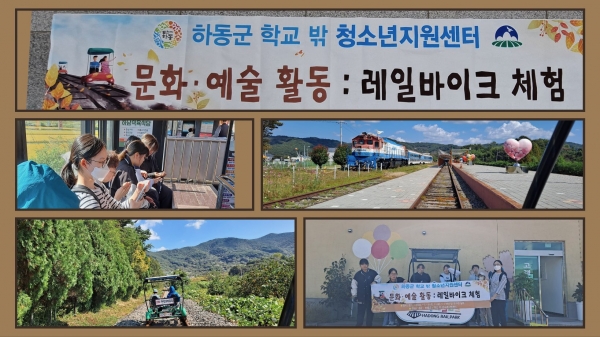 [금요저널] 하동군학교밖청소년지원센터는 국내 최대규모의 꽃잔치가 열린 지난주 학교 밖 청소년 10명이 레일바이크 체험을 했다고 16일 밝혔다.