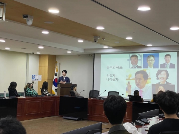 이후 김온수 특보는 의원회관 제9간담회실에서 "창의적 융합 ‘사회’를 선도하는 ‘정치 시스템’ 구축과 ‘우리’의 역할"이라는 주제로 강연을 진행했다.