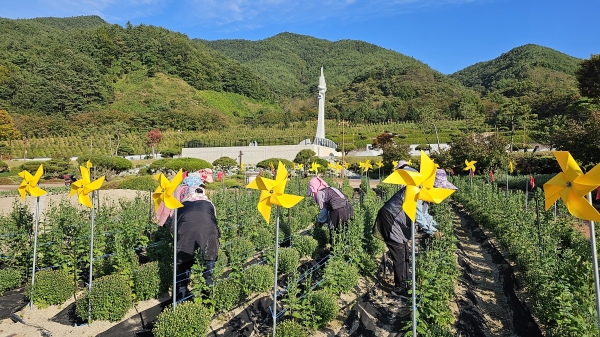 군은 차별화된 국화동산 조성을 위해 경상남도 농업기술원 화훼연구소와 업무협약 체결을 통해 시중에서 접하기 어려운 우수 육성품종을 공급받아 자체 증식시켜 이벤트하우스, 주출입구 등 추모공원 일원에서 국화의 아름다움을 선보일 예정이다.