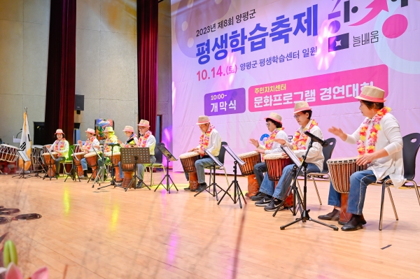 이날 행사는 ‘함성’을 주제로 양평군민이 평생학습을 통해 즐겁게 배우며 ‘함’께 ‘성’장하길 바라는 염원을 담아 개최했으며 우천에도 불구하고 군민 1천여명이 참여해 학습자와 주민이 어우러져 학습의 성과를 공유하는 자리로 펼쳐졌다.