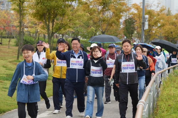 지역주민의 건강한 신체활동을 독려하고자 올해로 다섯 번째로 개최한 이날 걷기대회 행사는 가족, 연인, 친구의 손을 잡고 공원으로 나선 시민들이 건강 스트레칭 체조 후 질서정연하게 대회에 임했다.
