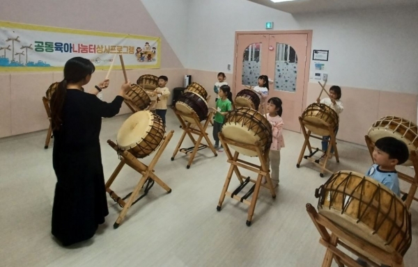 [금요저널] 고성군 장난감도서관에서는 지역 연계사업 ‘고성오광대와 함께하는 어린이 난타’를 기획해 10월 10일 장난감도서관 아동을 대상으로 ‘북치고~ 얼쑤~’를 진행했다.