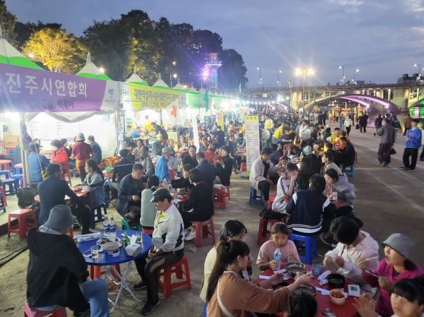 [금요저널] 진주시는 10월 축제기간 중 천수교 아래 망경동 둔치에서 진주음식큰잔치 8개 부스를 운영하고 있다.