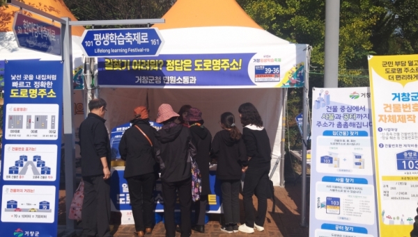 [금요저널] 거창군은 지난 13부터 15일까지 거창스포츠파크 일원에서 열린 2023 거창한마당대축제 행사장에서 ‘알아두면 유익한 도로명주소’ 사용 홍보에 적극 나섰다.