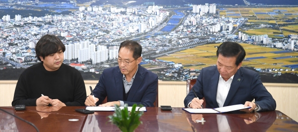 [금요저널] 거창군은 16일 군청 상황실에서 구인모 군수, 김지형·김효중 ㈜하나로금속 대표 및 관계자가 참석한 가운데 ㈜하나로금속과 투자협약을 체결했다.