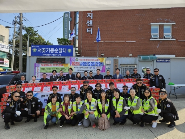 행사에 참석한 강범석 서구청장은 “서곶자율방범 기동순찰대는 44년 동안 지역사회 수호자로서의 역할을 다했을 뿐만 아니라 지난 12년간 꾸준히 지역사회 어려운 이웃들에 쌀 1,900포, 라면 1,100박스를 기부했다. 독거노인 및 어르신들에게 7차례 식사를 대접한 서곶자율방범 기동순찰대 대원과 자발적으로 사랑의 모금함에 동참한 지역상인들이 이 시대의 진정한 봉사자이다” 라며 감사인사를 전했다.