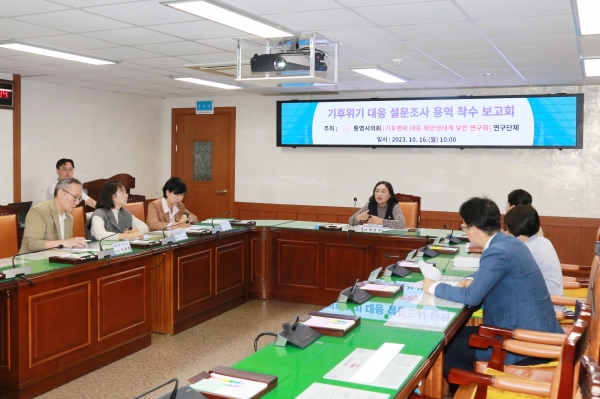 [금요저널] 통영시의회 의원연구단체‘기후변화 대응 해양생태계 보전 연구회’는 지난 16일 통영시의회 특별위원회실에서 환경 분야의 여러 단체들과 “기후위기와 탄소중립에 대한 시민 인식조사” 설문조사용역 착수보고회를 개최했다.