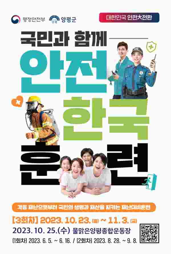 정희봉 안전총괄과장은 “이번 안전한국훈련은 코로나 19와 작년 호우로 인한 특별재난지역 선포로 오랜만에 실시되는 만큼 내실 있게 준비해 각종 재난 상황을 신속하고 효과적으로 해결할 수 있는 역량을 높이고 안전한 양평군을 위해 노력하겠다”고 전했다.