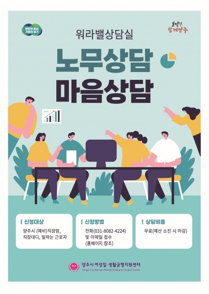양주시 여성일·생활균형지원센터, 일하는 여성들을 위한 ‘워라밸 상담실’무료 운영
