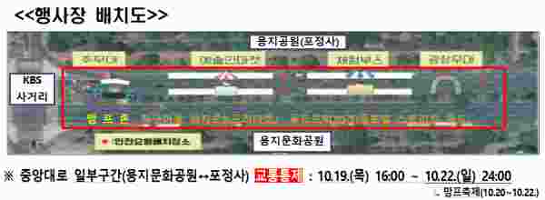 이번 축제장 설치를 위해 창원 중앙대로 중 KBS사거리-경남신문사사거리가 교통 통제될 예정이다.