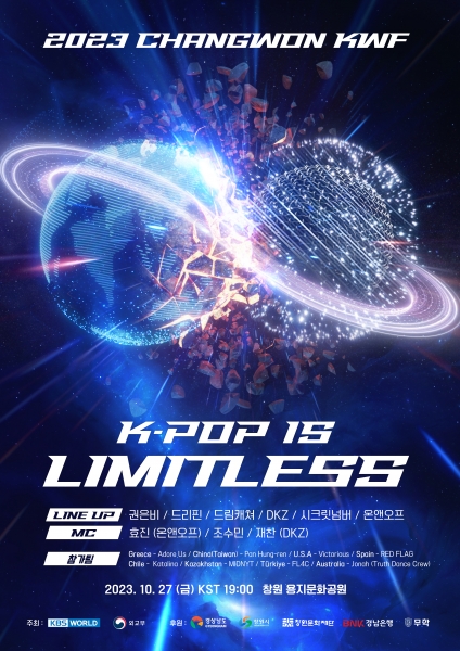 한편 전 세계를 열광시킬 화려한 K-POP의 향연, ‘2023 창원 K-POP 월드 페스티벌’이 10월 27일 금요일 오후 7시 창원 용지문화공원에서 개최되며 올해로 12회를 맞이한 ‘2023 창원 K-POP 월드 페스티벌’은 전 세계 K-POP 실력자들이 참여하는 지구촌 최대 K-POP 축제로 전 세계 53개국 54개 지역에서 글로벌 예선이 열렸다.