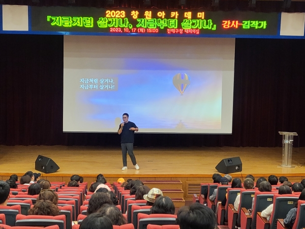 [금요저널] 창원특례시는 지난 17일 진해구청 대회의실에서 시민 400여명이 참석한 가운데 2023년 ‘창원 아카데미’ 마지막 강연을 성황리에 개최했다.