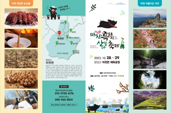 이번 축제를 주최 및 주관하는 문호성 지리산마천골흑돼지&산나물 축제 위원장은 “마천 농촌관광 활성화를 주제로 마천 주민들이 합심해 작지만 알찬 체험형 축제를 준비하였으니, 가을이 물든 10월 아름다운 지리산 마천골에서 오셔서 도시에서 지친 마음의 짐을 잠시 잊고 농촌 가을의 풍성한 결실을 마음껏 즐기는 시간을 가져보시길 바란다”고 전했다.