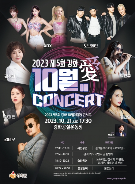 [금요저널] 강화군이 오는 21일 오후 5시 30분 강화공설운동장에서 군 대표 뮤직 페스티벌인 ‘2023년 제5회 강화 10월애 콘서트’를 개최한다.