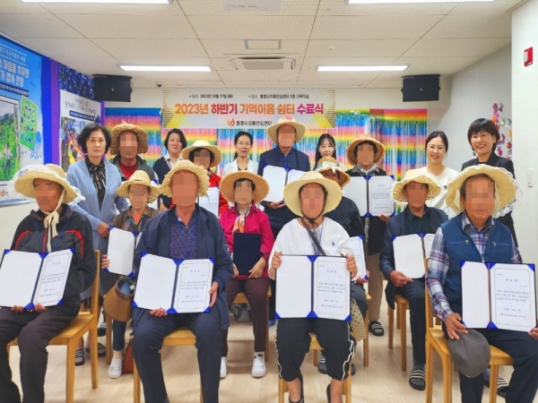 [금요저널] 통영시는 지난 17일 기억이음 쉼터 참여 어르신 13명과 함께 ‘2023년 하반기 치매환자 기억이음 쉼터’프로그램 수료식을 가졌다.