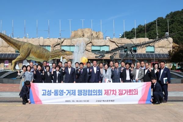 [금요저널] 고성-통영-거제 3개 시군 행정협의회 제7차 정기회의가 10월 18일 고성 엑스포 주제관에서 개최됐다이날 정기회의 민선8기를 맞아 처음으로 함께하는 고성-통영-거제 3개 시군 간 우호 협력 증진과 동반자적 공동 발전 도모를 위해 추진됐으며 협의회장인 이상근 고성군수, 천영기 통영시장, 박종우 거제시장을 비롯한 담당 공무원 등 40여명이 참석한 가운데 안검심의, 건의사항 및 토론, 엑스포 투어 등의 순서로 진행됐다.