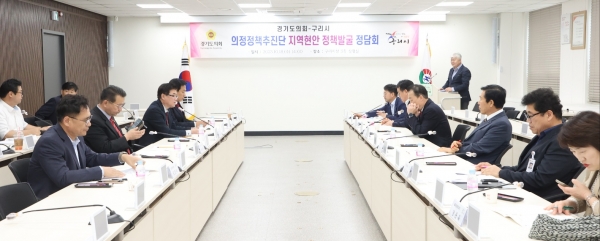 [금요저널] 경기도의회 의정정책추진단은 18일 구리시에서 ‘지역 현안 정책발굴 정담회’를 열고 구리지역 정책 현안과 도의회 차원의 지원 방안을 논의했다.