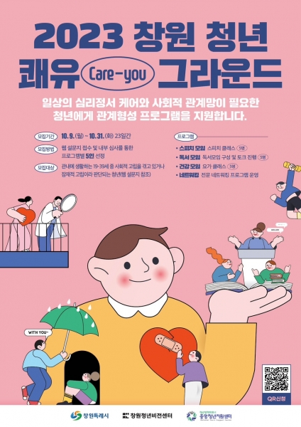 [금요저널] 창원청년비전센터에서 10월 31일까지 고립청년에 대한 사회적 문제 인식 제고 및 저변 확대를 위한 ‘창원 청년 쾌유 그라운드’ 참여자 15명을 모집한다.