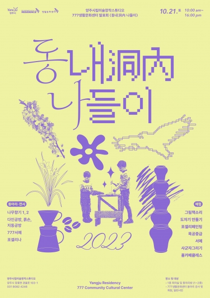 [금요저널] 양주시는 오는 20, 21일 양일간 지역주민과 예술가의 융합 커뮤니티 공간인 양주시립미술창작스튜디오에서 ‘2023 입주작가 오픈스튜디오’와‘동내洞內 나들이展’을 개최한다고 밝혔다.