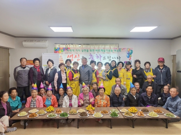 임명희 여성회장은 “우리 회원들이 손수 준비한 생신상에 행복해하시는 어르신들을 보니 뿌듯함을 느낀다”며 “앞으로도 바르게살기여성회에서는 지속적으로 어르신 생신상 차려드리기 활동을 이어나가겠다”고 말했다.